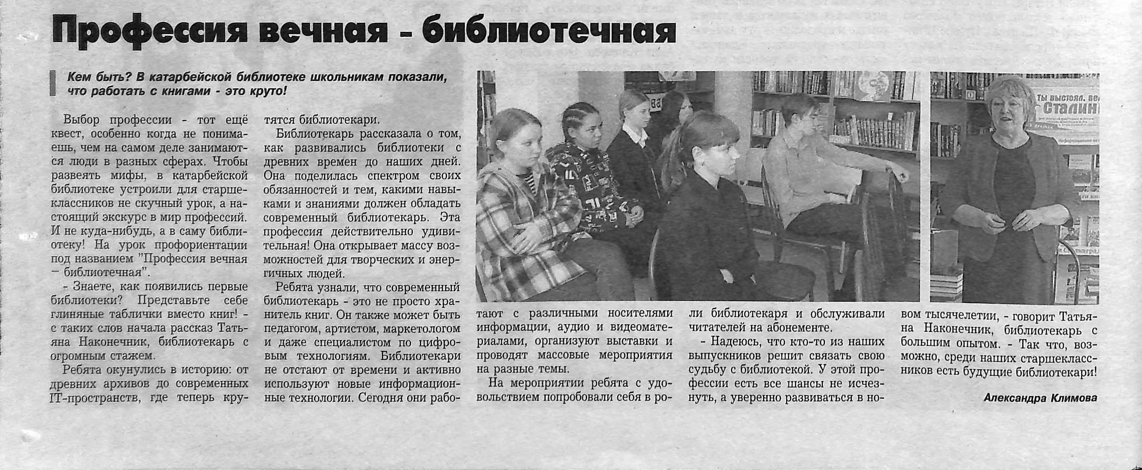 4.Климова, А. Профессия вечная – библиотечная / Александра Климова// Тракт. – 2025. – 12 февраля (№6). – С.6. скачать