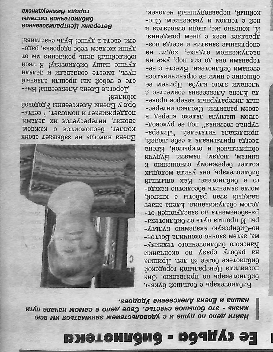 О заведующей отделом обслуживания Центральной городской библиотеки г. Нижнеудинска Елене Алексеевне Удодовой скачать